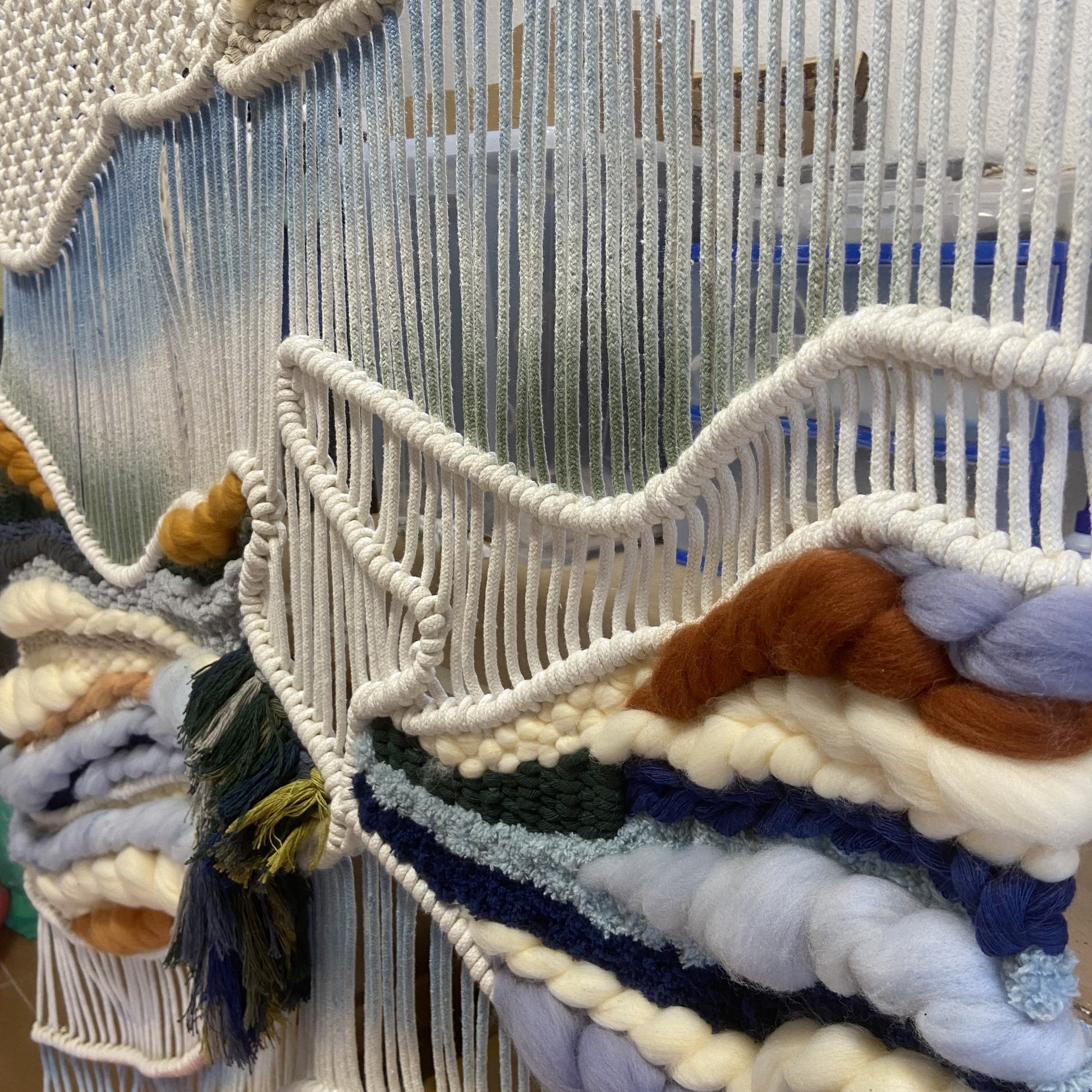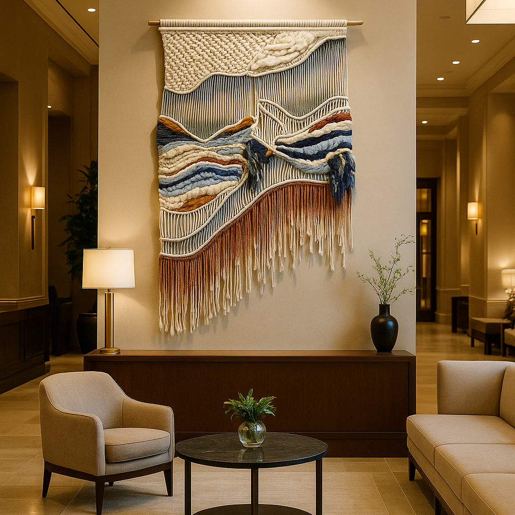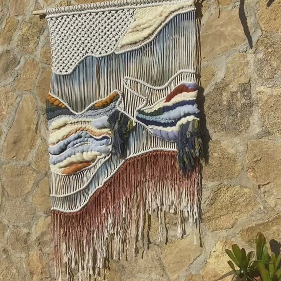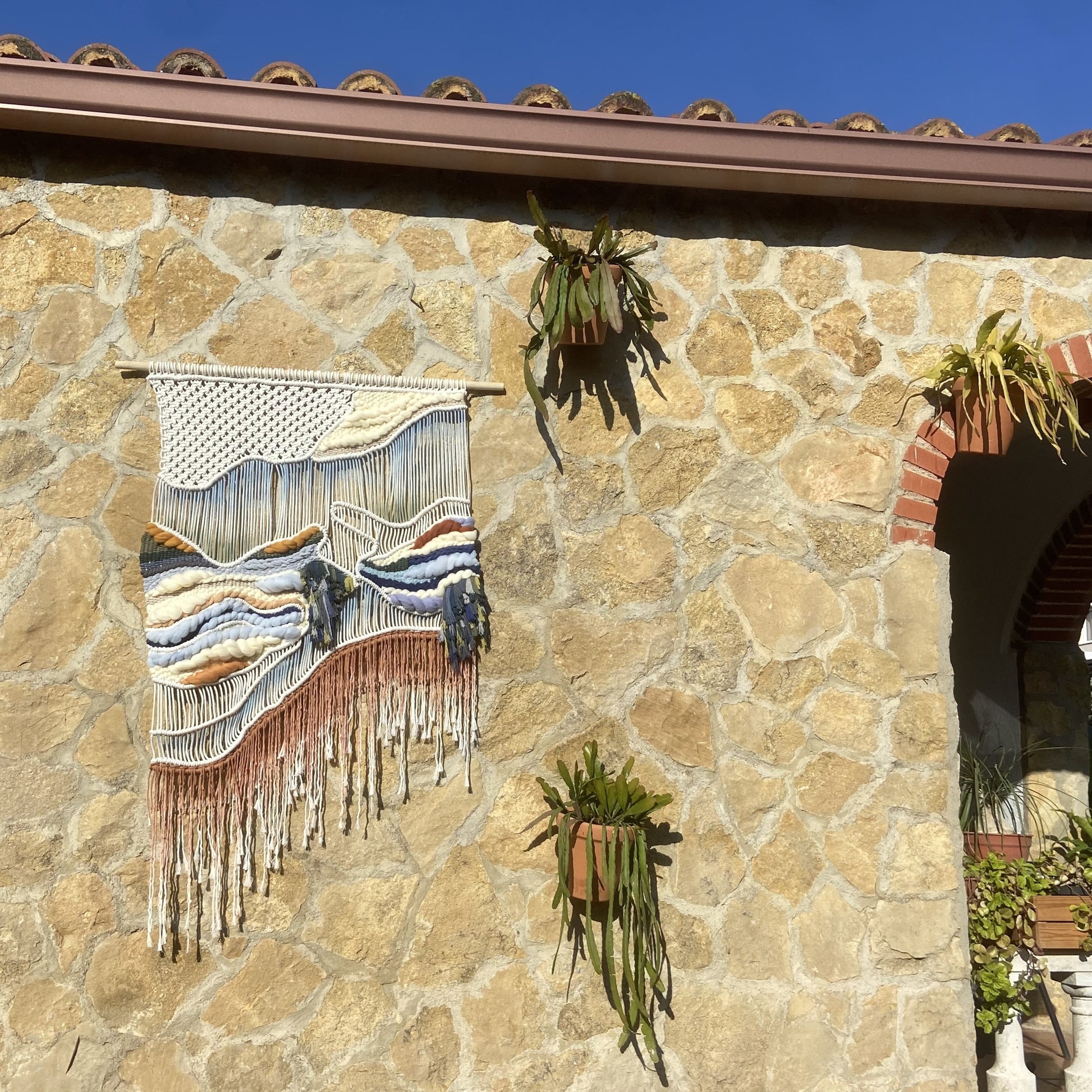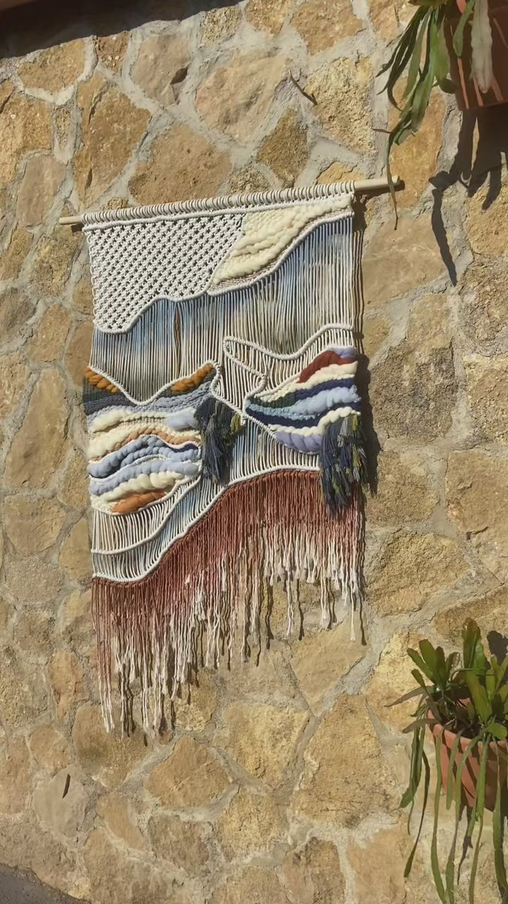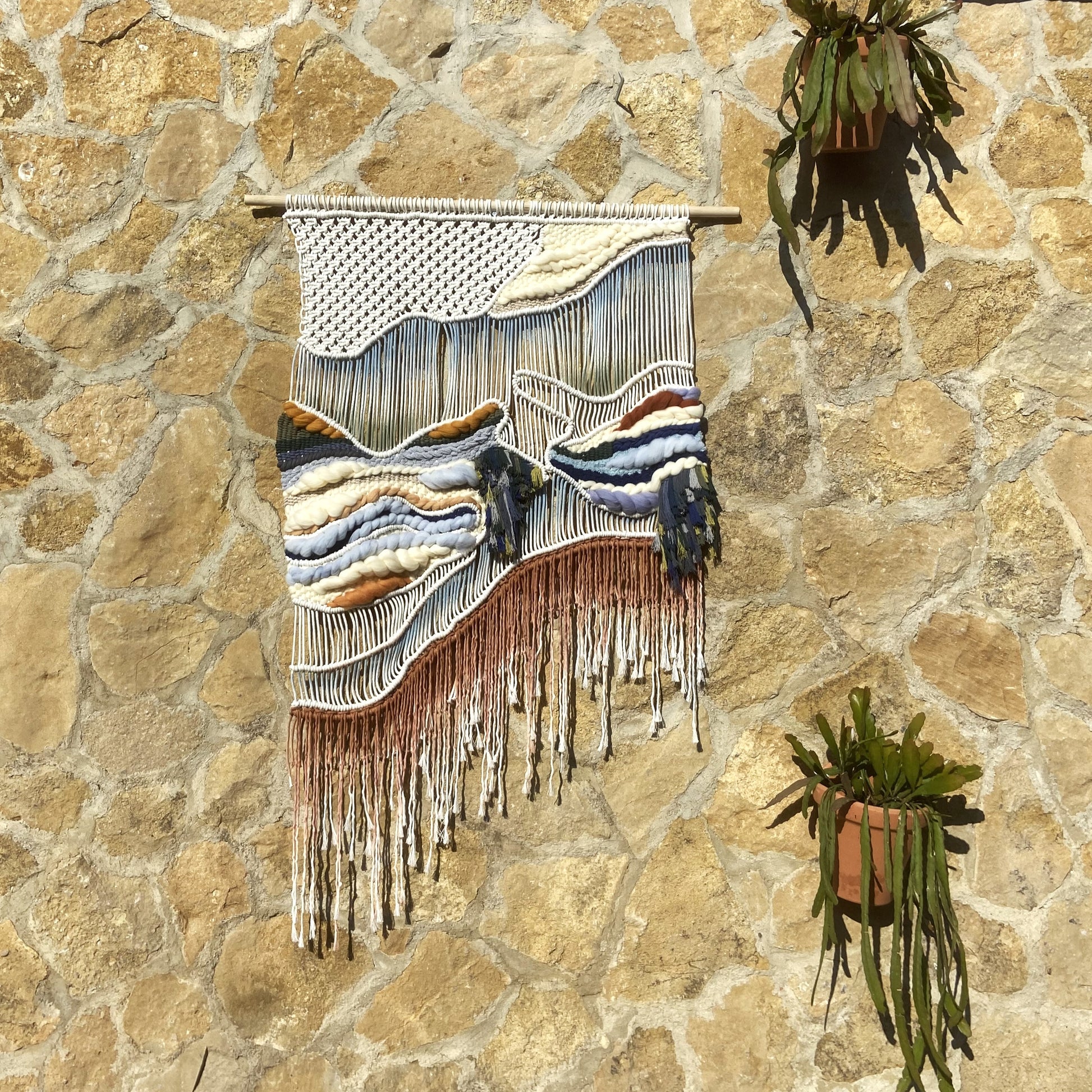 Sumérgete en la contemplación de 'Ecos de la Tierra', un tapiz que captura la esencia indómita de los paisajes a través de la magia del tejido artesanal. Cada hilo y cada nudo son una pincelada en este lienzo de texturas, donde la mano del artista da forma a una visión abstracta y evocadora de la naturaleza.